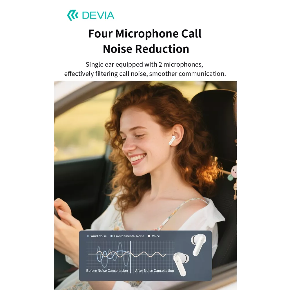 Four strategically placed microphones work in harmony to filter out wind, traffic, and background chatter during calls. Whether you’re on a conference call or chatting with friends, your voice remains crisp and intelligible, thanks to Devia’s intelligent call noise reduction algorithms.