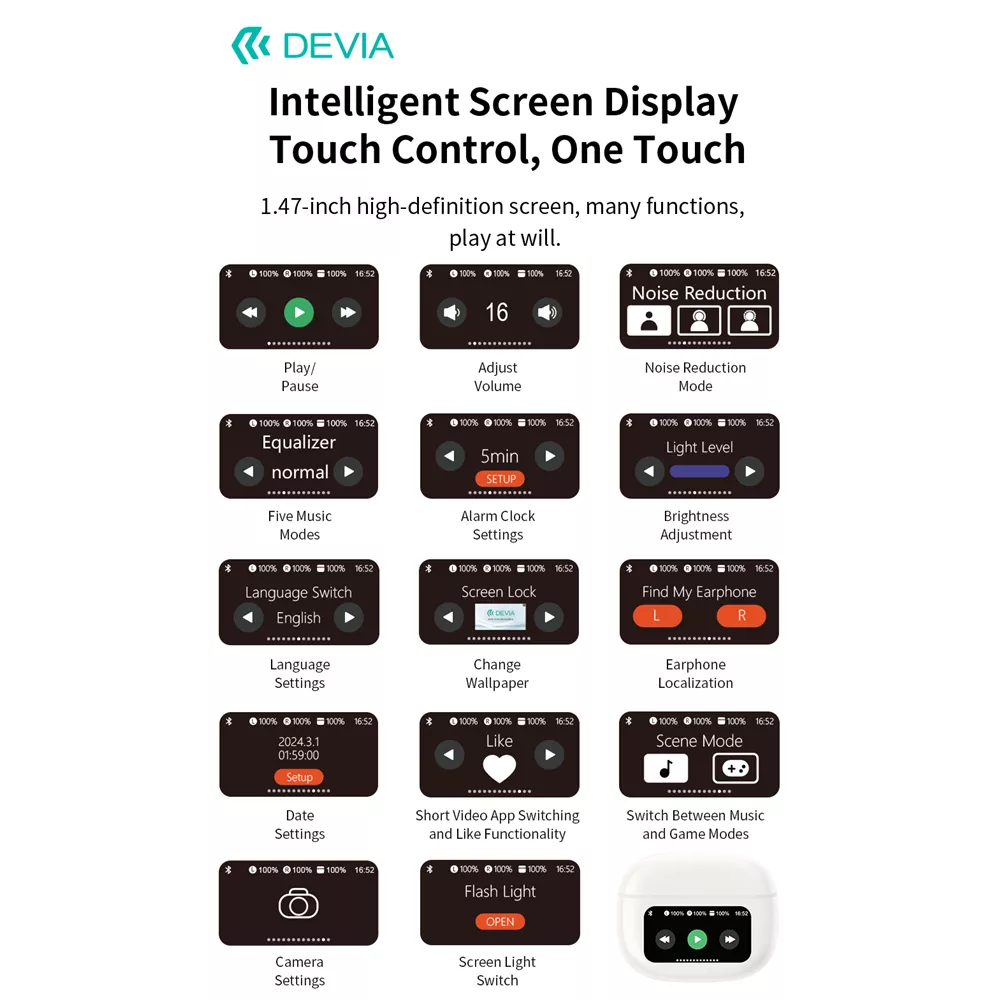 Devia - ANC TWS Pro3 - True Wireless Earbuds & Charging Case & Screen - White